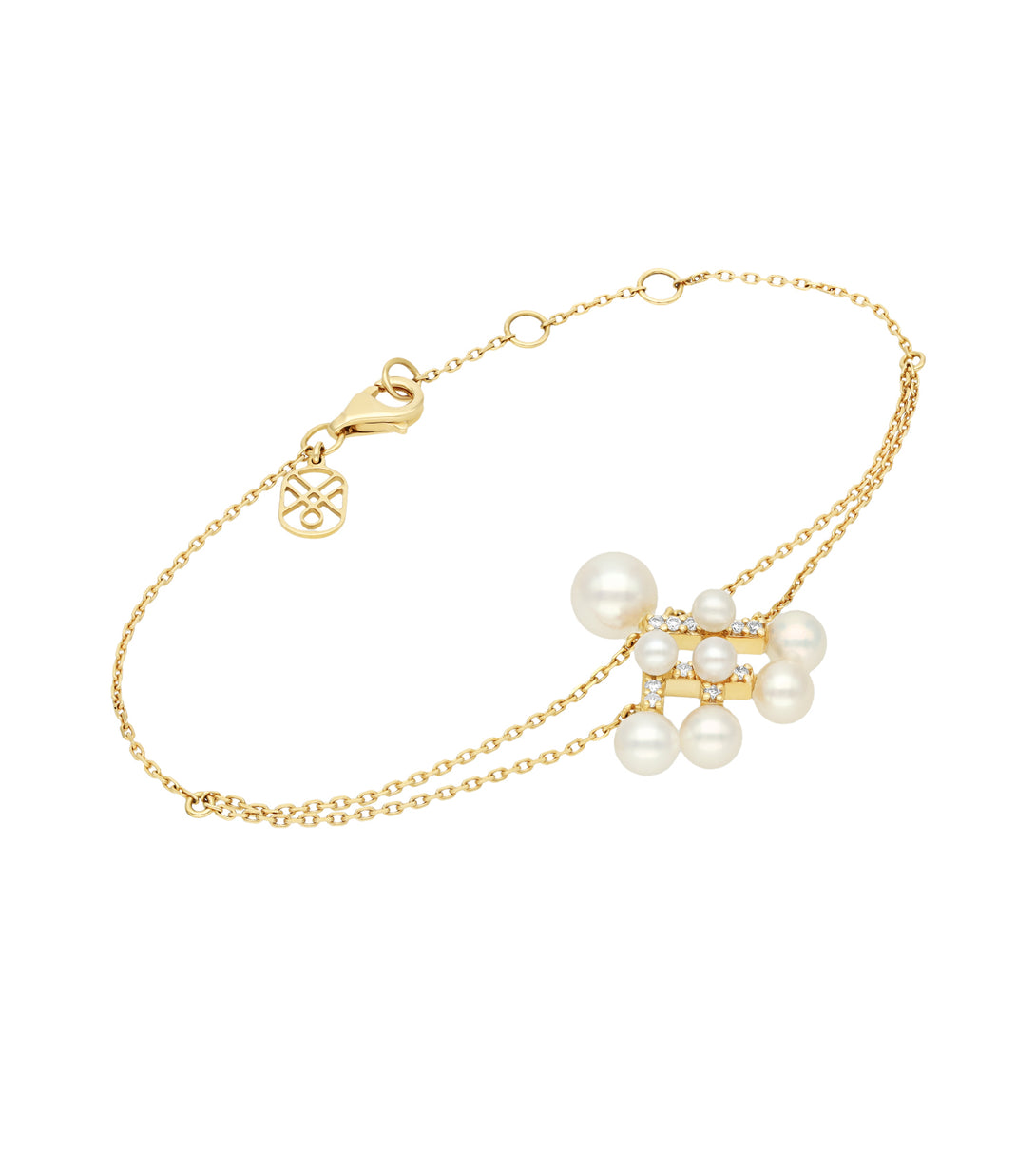 Introducing Al Fardan Essence, stunning addition to our collections. The bracelet design embodies the brand's identity. Designed in 18kt yellow gold adorned with 0.10 ct diamonds, a craftsmanship that resembles precision, sophistication and timeless luxury. The use of 0.89 ct pearls in the design which represents the birth of the brand, will make the piece suitable for the modern woman who demands nothing but the best.