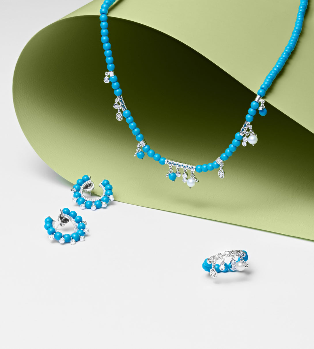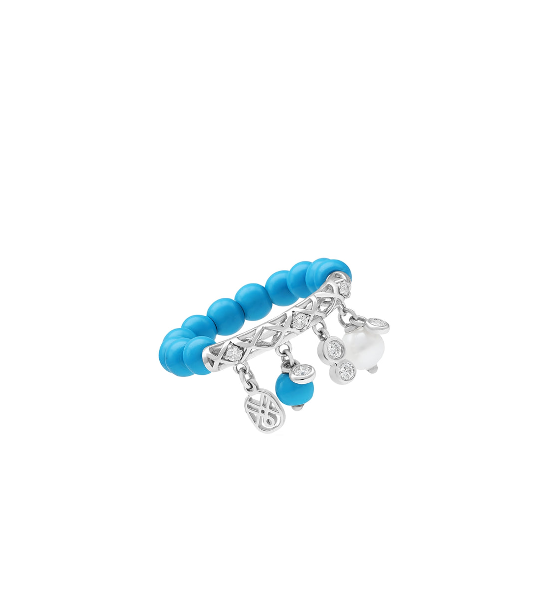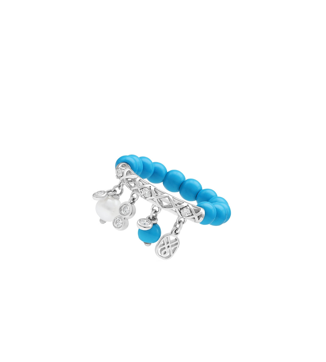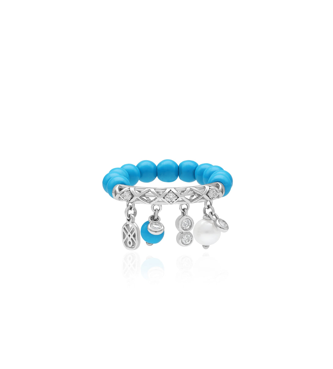 Step into the world of Mira, a celebration of the modern woman who knows she is the architect of her destiny. The Mira Turquoise ring is crafted in 18kt white gold, adorned with 0.14 ct diamonds, pearls and turquoise, reflecting the essence of the women who wear them.