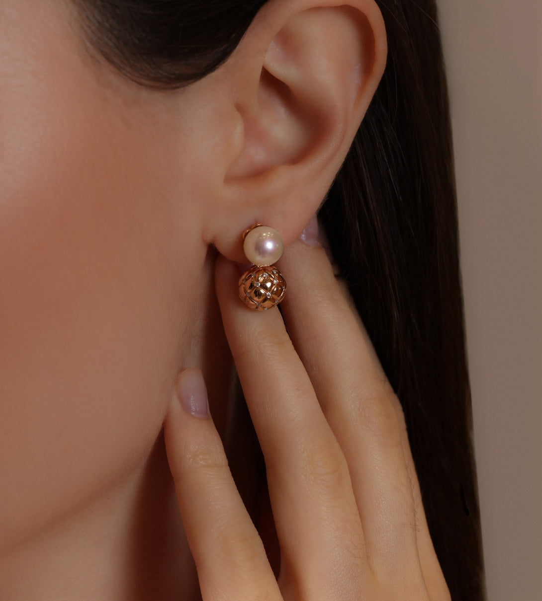 The Mirage Rose earrings blend elegance and sophistication, featuring lustrous pearls that crown stunning rose gold design. These timeless earrings add a touch of romance to any occasion. Perfect for both everyday wear and special events.